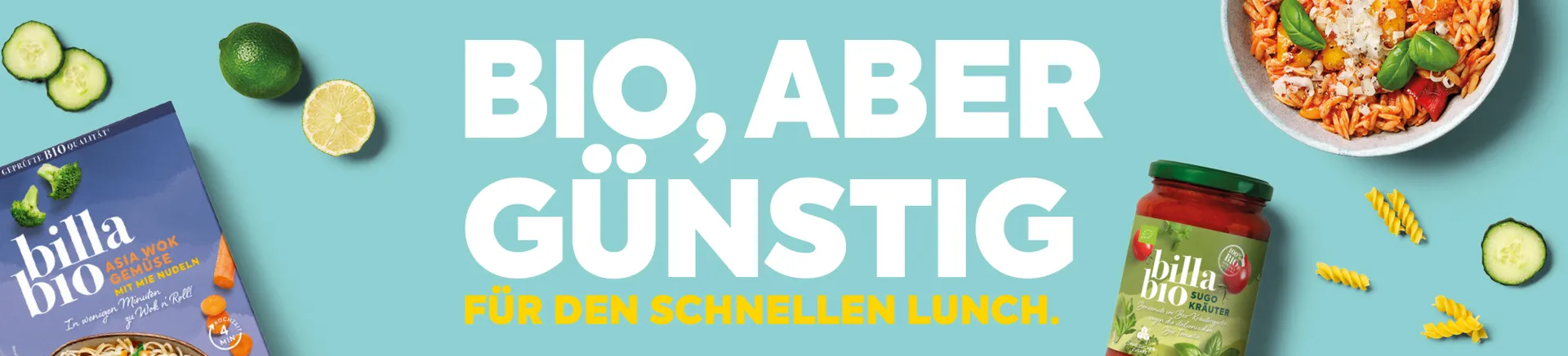 Bio, aber günstig – und bereit, wenn es schnell gehen muss. Hier stellen wir BILLA Bio Produkte vor, die perfekt für den schnellen Lunch geeignet sind: unkompliziert, vielseitig und in wenigen Handgriffen servierfertig. Für warme Teller, To-go-Lösungen und schnelle Pausen zwischendurch.