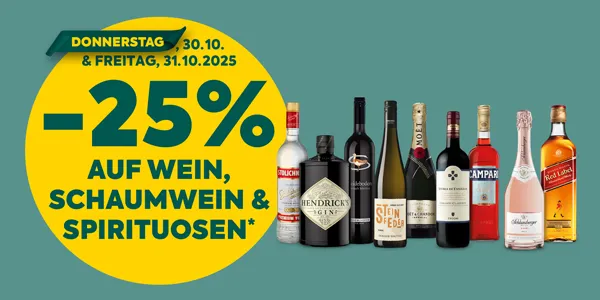 -25 % auf Wein, Schaumwein & Spirituosen*
