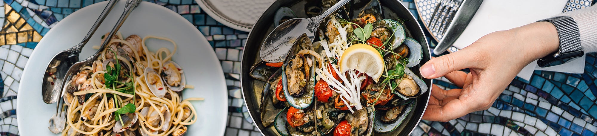 Essen ist im Süden viel mehr als nur reine Nahrungsaufnahme. Es ist „Convivialità“ – die reine Freude am gemeinsamen Tisch. Das Teilen von Speisen, das gemeinsame Lachen und die Zeit, die man sich füreinander nimmt, machen den mediterranen Lifestyle erst komplett. Es wird gegessen, erzählt und das Leben zelebriert. Am besten gelingt dieses Miteinander, wenn der Tisch voll mit vielen kleinen Köstlichkeiten – Mezze oder Tapas – steht, bei denen jeder zugreifen darf. Einfach gewünschte Kategorie anklicken und entdecken.