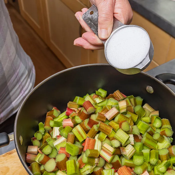 Eingekocht wird Rhabarber auch zu pikanten Chutneys, die hervorragend zu Käse oder Gegrilltem passen. Zudem lässt er sich zu Sirup und Limonadenbasis verarbeiten und verleiht Getränken, Spritzern und Bowlen eine fruchtig-säuerliche Note. Auch in der herzhaften Küche findet Rhabarber Verwendung – etwa in Saucen zu Fleisch oder Geflügel oder als frische säuerliche Komponente in Currys und Schmorgerichten. Hier wird er einfach mitgekocht oder gegart.