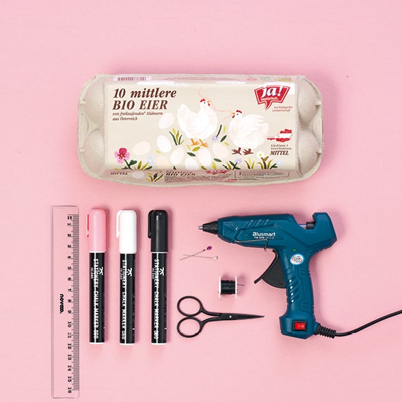 - Kreidemarker (z. B. in Weiß, Rosa, Schwarz), Acrylfarben oder deckende Filzstifte
