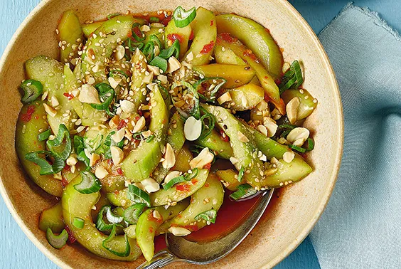 13. Gurken halten uns auch von innen frisch und hydriert. Mit etwa 97 % ist sie das Lebensmittel mit dem höchsten Wassergehalt.