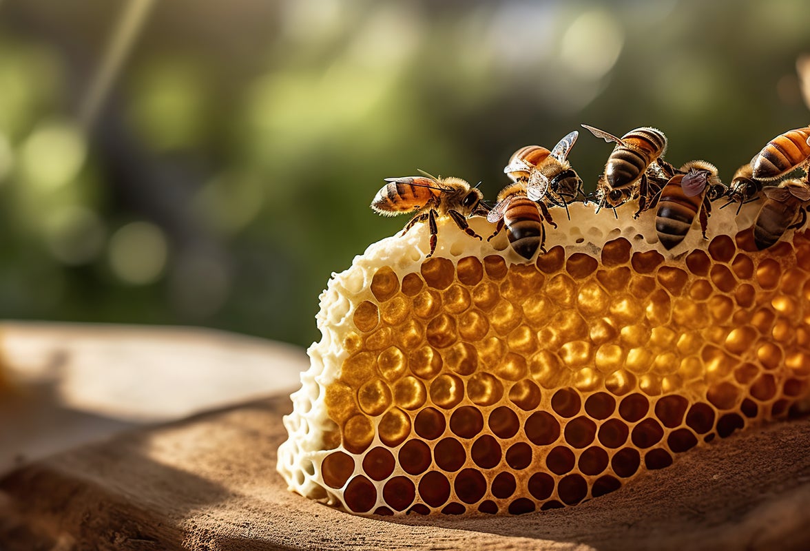 5. Honig ist ein natürliches Süßungsmittel, das von Honigbienen aus dem Nektar von Blüten oder aus Honigtau, einer zuckerhaltigen Substanz von Pflanzen, hergestellt wird. Die Bienen verarbeiten den Nektar oder Honigtau in ihrem Körper, indem sie ihn mit Enzymen anreichern, und lagern ihn anschließend in Waben, wo er reift und seinen charakteristischen Geschmack, seine Konsistenz und Haltbarkeit erhält.