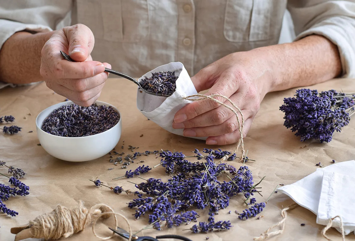 16. Getrocknete Kräuter wie Lavendel, Rosmarin oder Zitronenmelisse in kleine Säckchen füllen und in Schränke oder Schubladen legen – das vertreibt Motten und sorgt für frischen Duft.