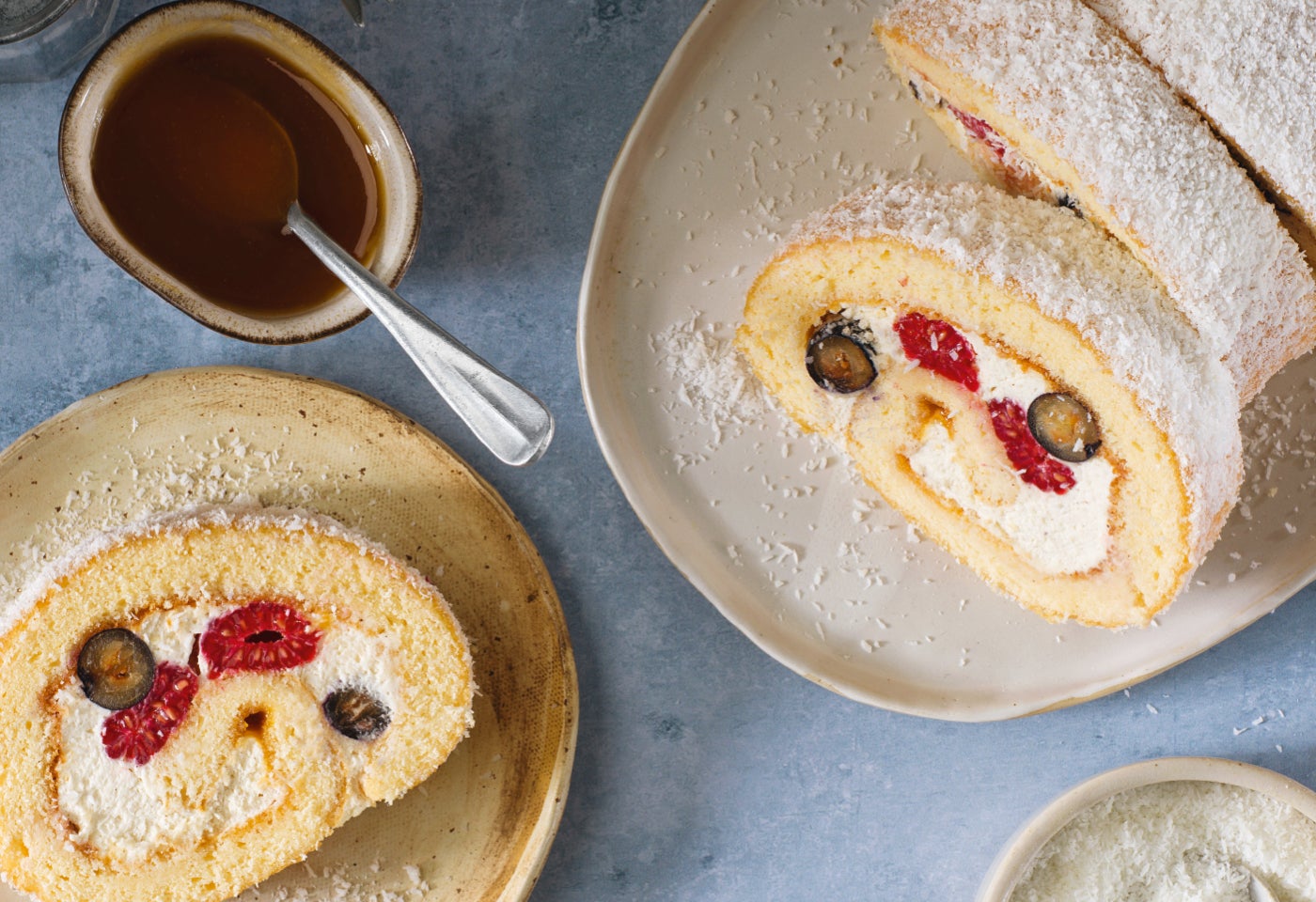 Beeren-Kokos-Biskuitroulade und Rezepte für jeden Tag. Einfache und schnelle Gerichte mit vielen Tipps zum Nachkochen!