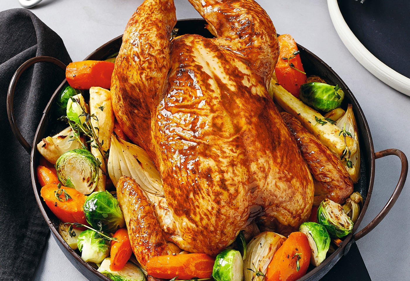 Hendl und Gemüse anrichten und servieren.