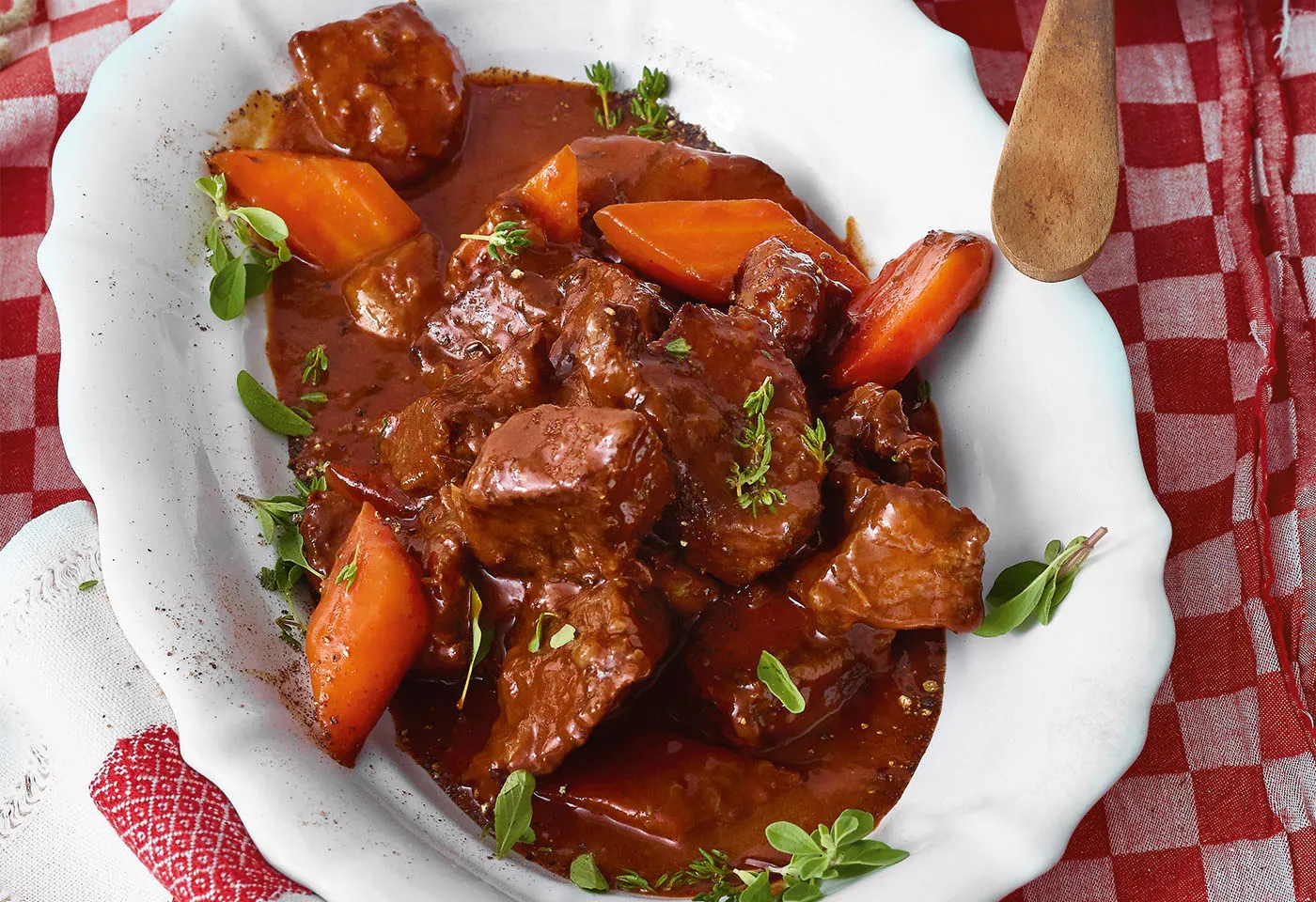 - 1 kgRindfleisch (z.B. Gulaschfleisch)