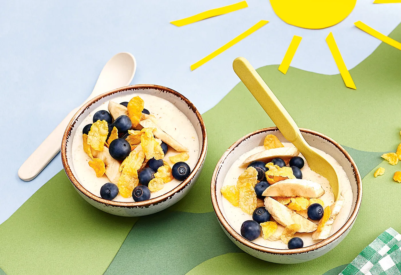 Bio-Cornflakes-Pudding mit fruchtigem Topping