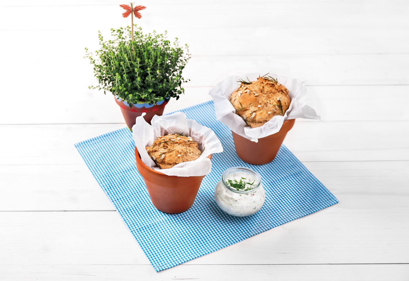 Bio-Dinkel-Topfen-Brot mit Kräuteraufstrich