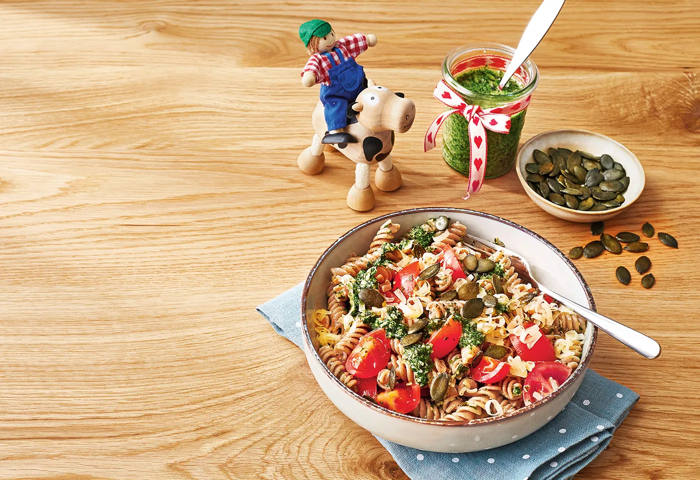 Bio-Kürbiskern-Pesto zu Vollkorn-Pasta