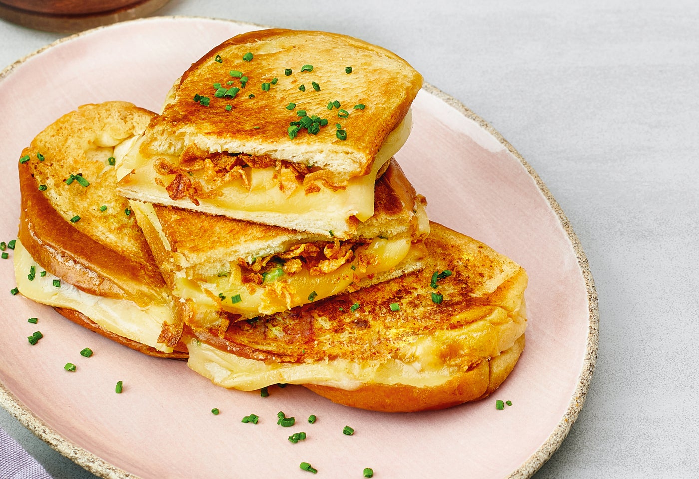 Käsesandwiches anrichten und mit Schnittlauch bestreuen.
