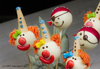 - Candy-Melt (Glasur für die Cake Pops, ersatzweise Punschkrapferlglasur oder flüssige Schokolade)