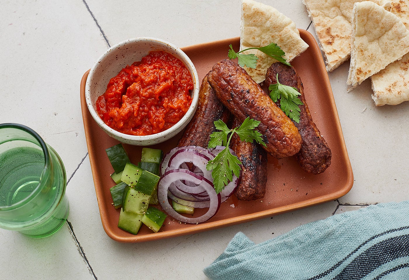 Zutaten für remove add Portion(en)300 ggemischtes Faschiertes1 kleine Zwiebel1 Knoblauchzehe0.5 TLPaprikapulver (rosenscharf)3 ELAjvar2 Pitabrote etwasfrische Petersilie (optional) Salz PfefferZubereiten
