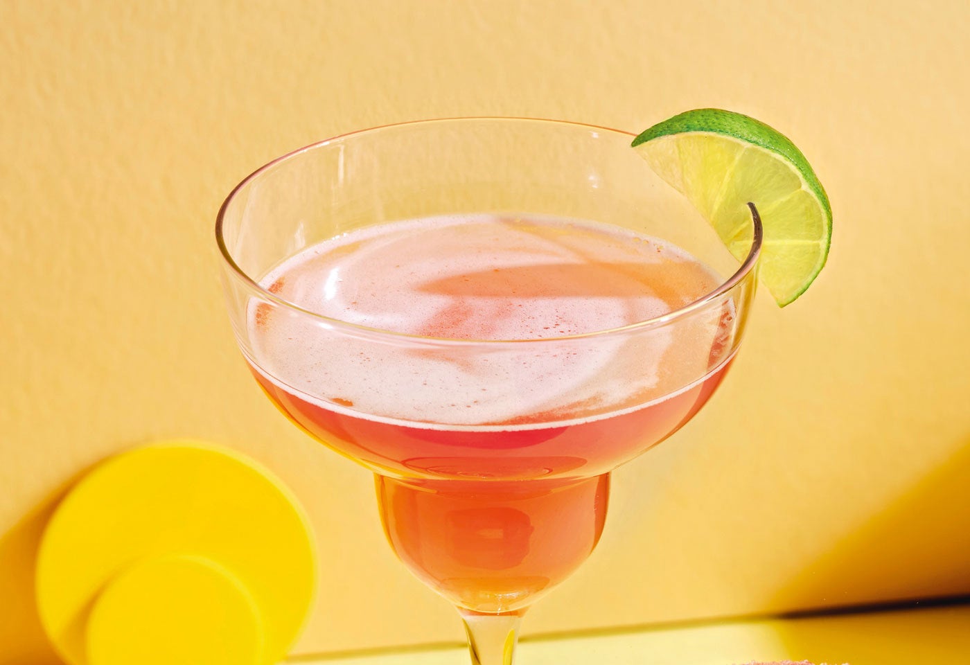 Cocktail durch ein Barsieb in die Gläser gießen. Die Glasränder jeweils mit einer Limettenspalte einreiben und diese an den Rand stecken. Servieren.