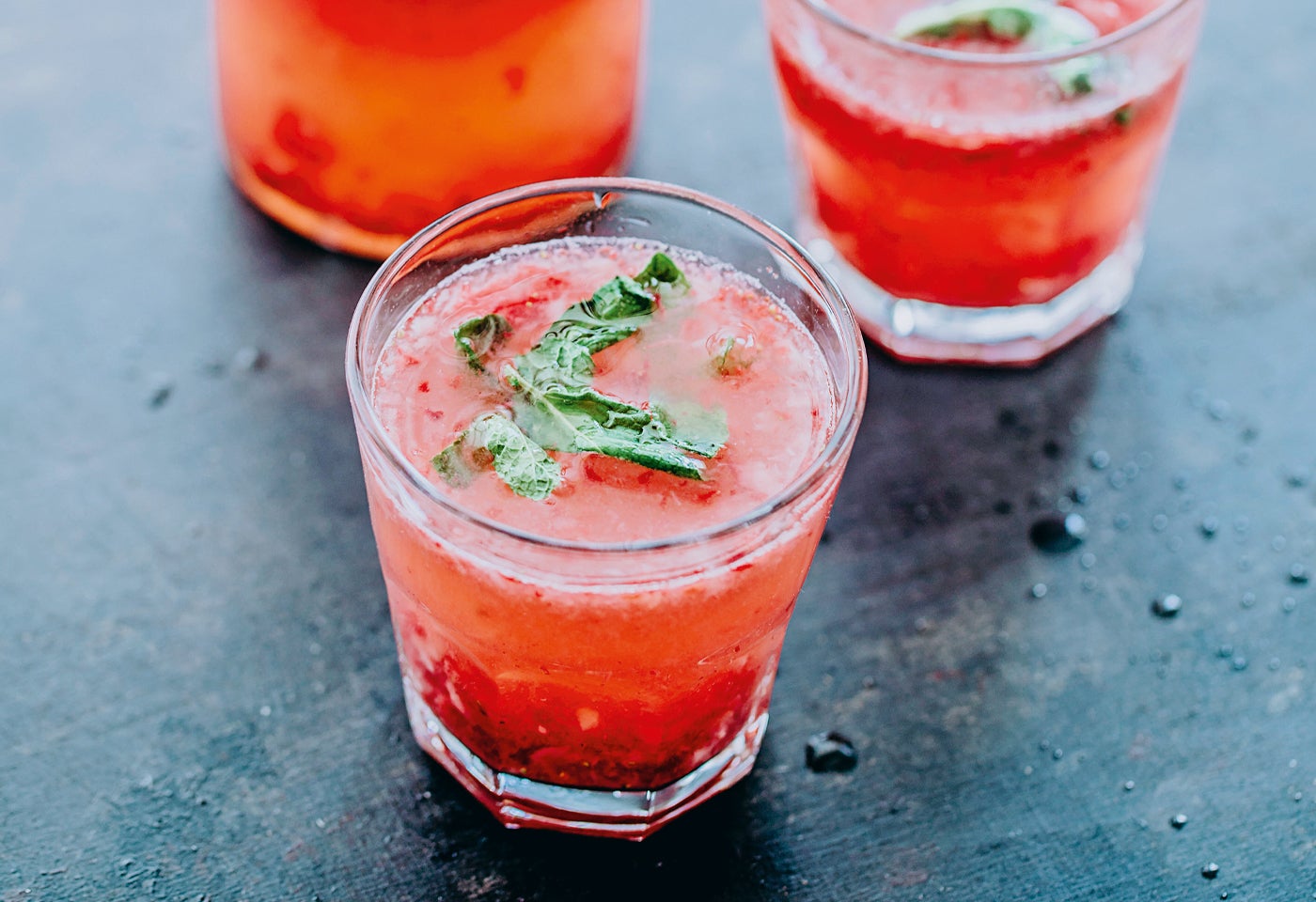 Zutaten für remove add Portion(en)60 gKristallzucker300 gErdbeeren70 mlfrisch gepresster Zitronensaft (von 1-2 Zitronen)2 Minzzweige800 mlkaltes Mineralwasser Crushed Ice oder EiswürfelZubereiten
