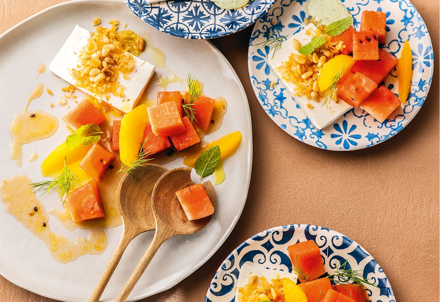 Feta mit Pinienkern-Orangen-Crunch und Wassermelone