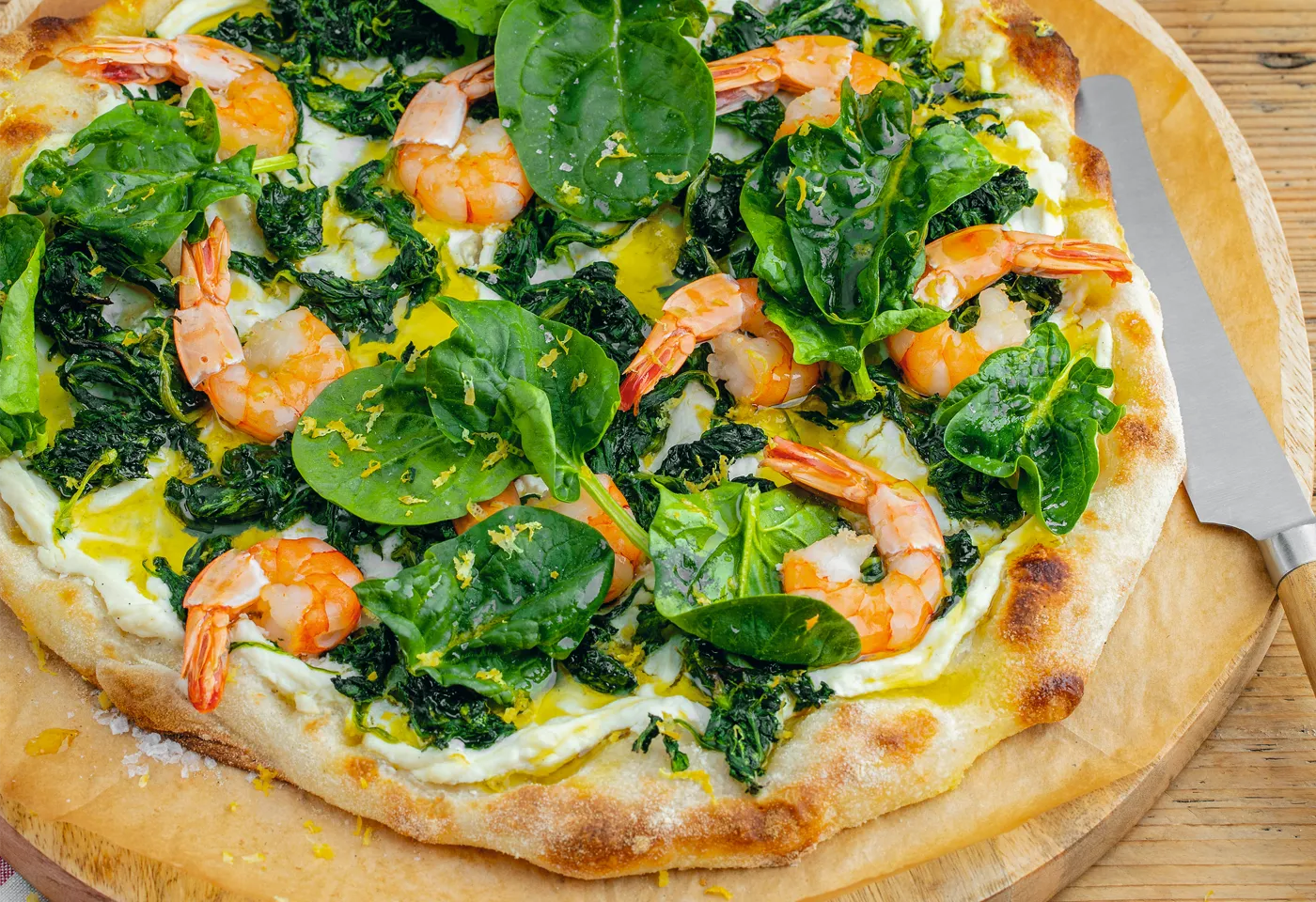 Garnelen-Spinat-Pizza