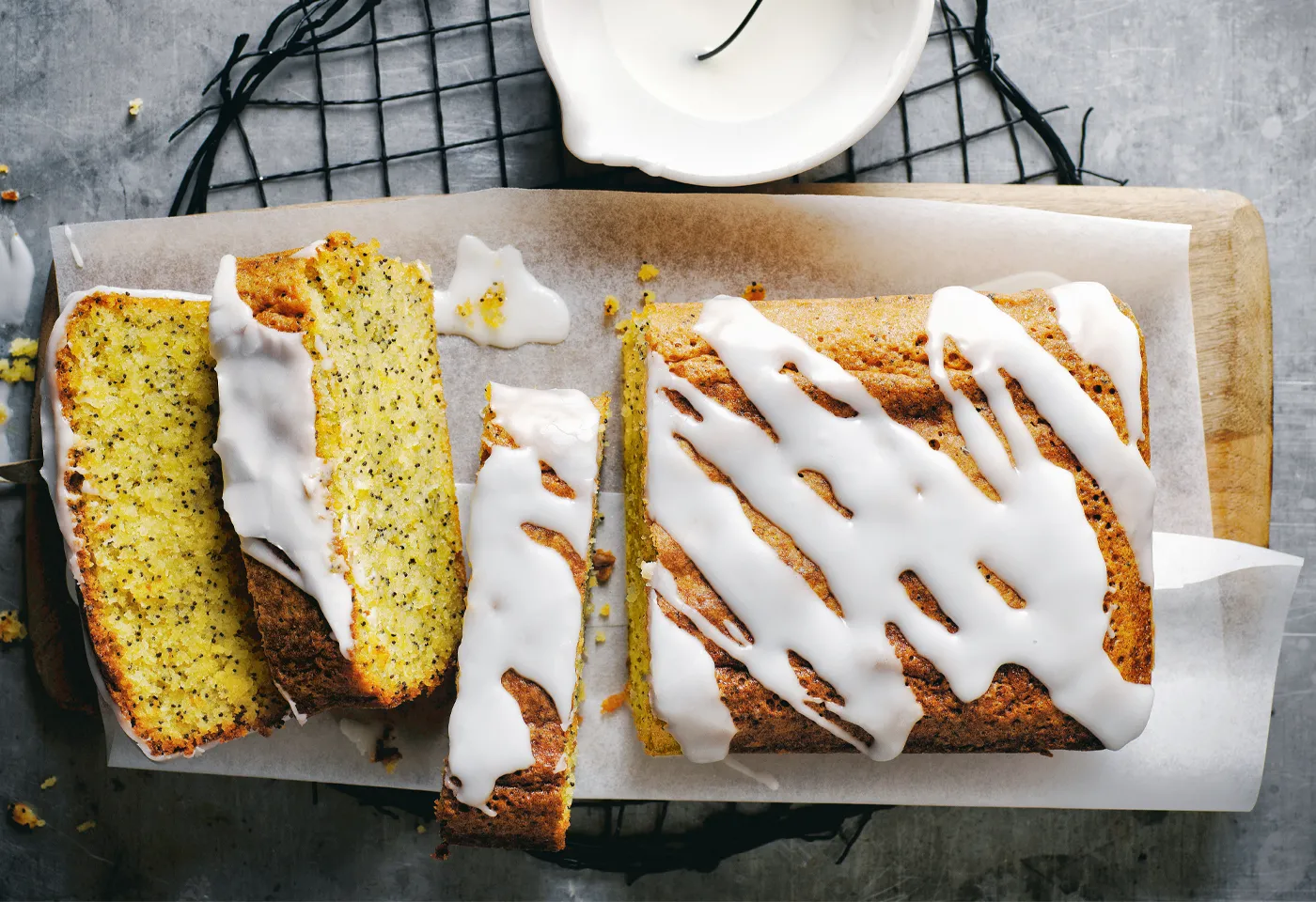 Glutenfreier Zitronen-Mohn-Kuchen mit Zuckerguss