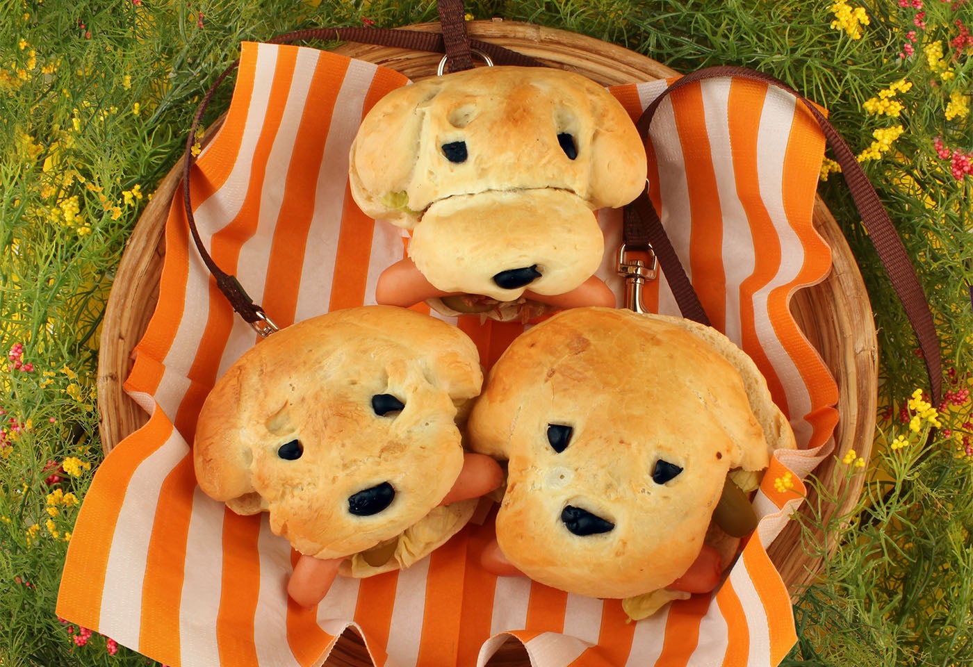 Die Brothälften mit Senf und Ketchup bestreichen, mit Gurken belegen und mit Röstzwiebeln bestreuen. Ein Blatt Salat und die heißen Würstchen zwischen die Brothälften legen.