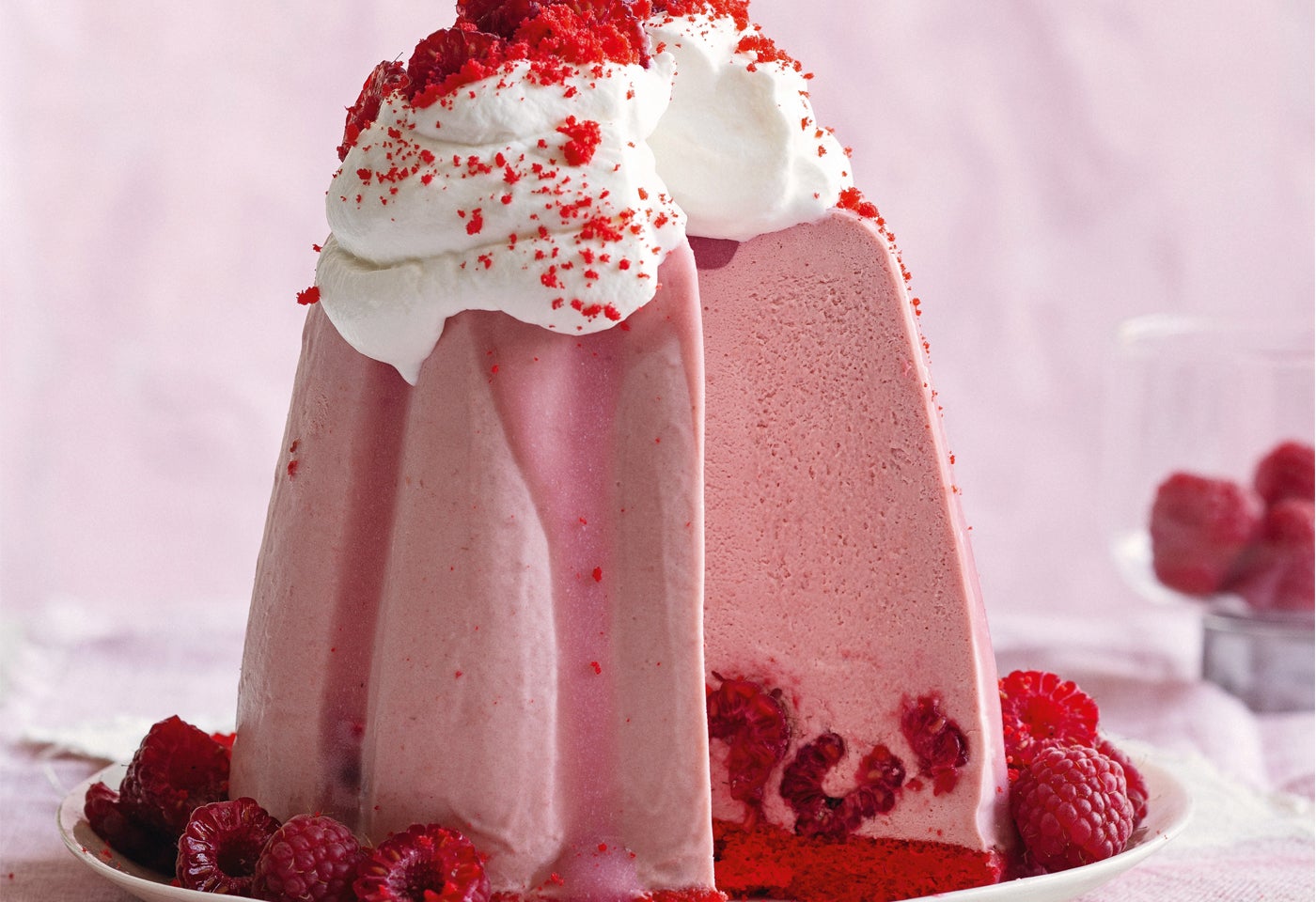 Gelatine in reichlich kaltem Wasser einweichen. Dotter mit Zucker in einer Metallschüssel schaumig schlagen. Vanilleobers durch ein Sieb dazugießen. Über Wasserdampf cremig rühren. Gelatine ausdrücken, zur Creme geben und in einem kalten Wasserbad rühren, bis die Creme langsam zu gelieren beginnt. Erdbeerpüree unterziehen. 250 ml Obers steif schlagen und unterheben.