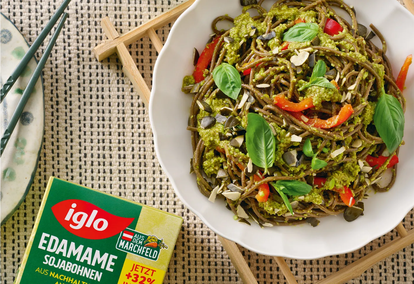 iglo Edamame-Pesto mit Sobanudeln und Kürbiskernen und Rezepte für jeden Tag. Einfache und schnelle Gerichte mit vielen Tipps zum Nachkochen!