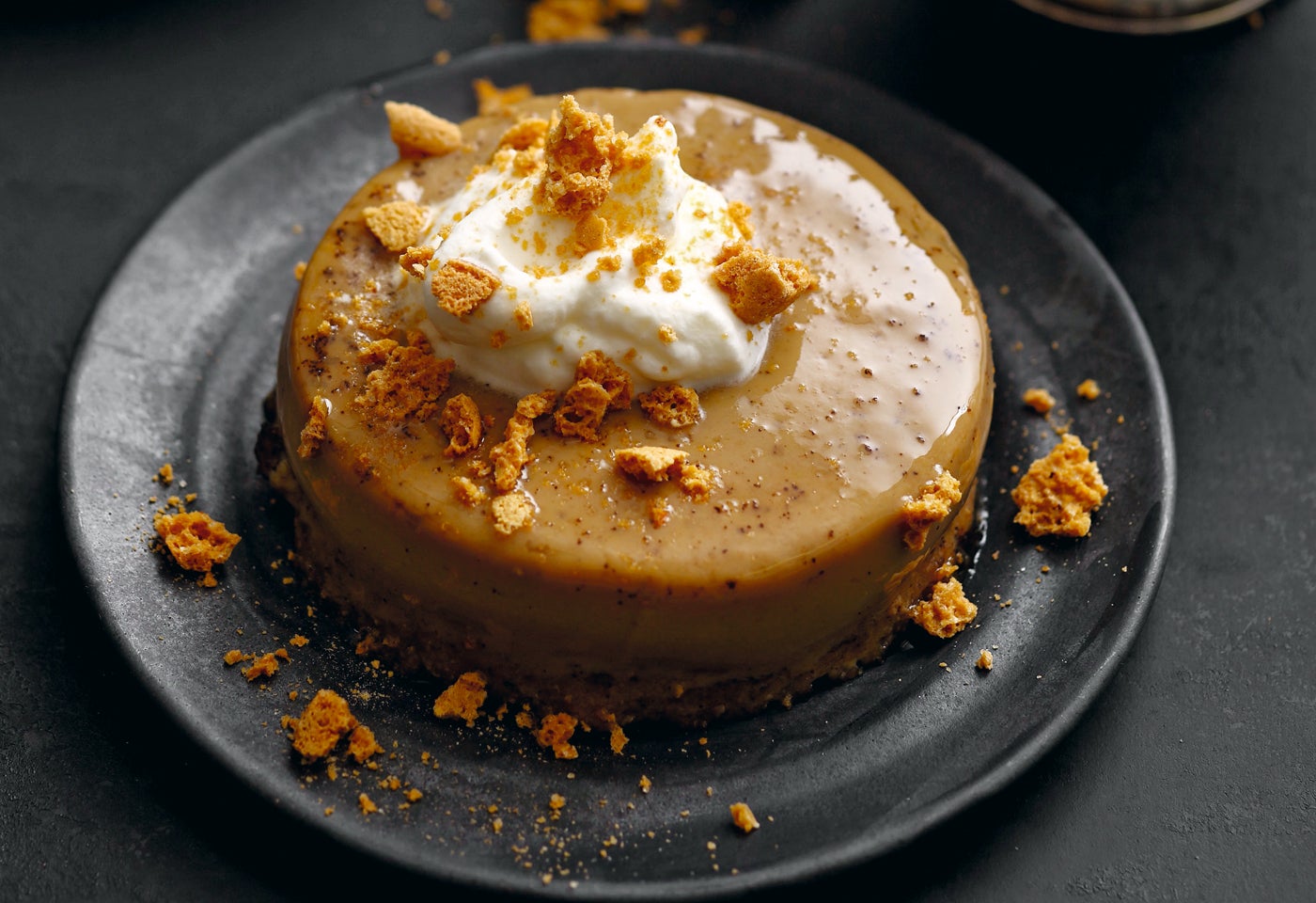 Obers steif schlagen. Amaretti mit einem Messer grob zerkleinern. Flans mit einem kleinen Messer vorsichtig vom Rand lösen und auf Teller stürzen. Mit je 1 Prise gemahlenem Kaffee bestäuben und mit Obers und Amarettibröseln garnieren.