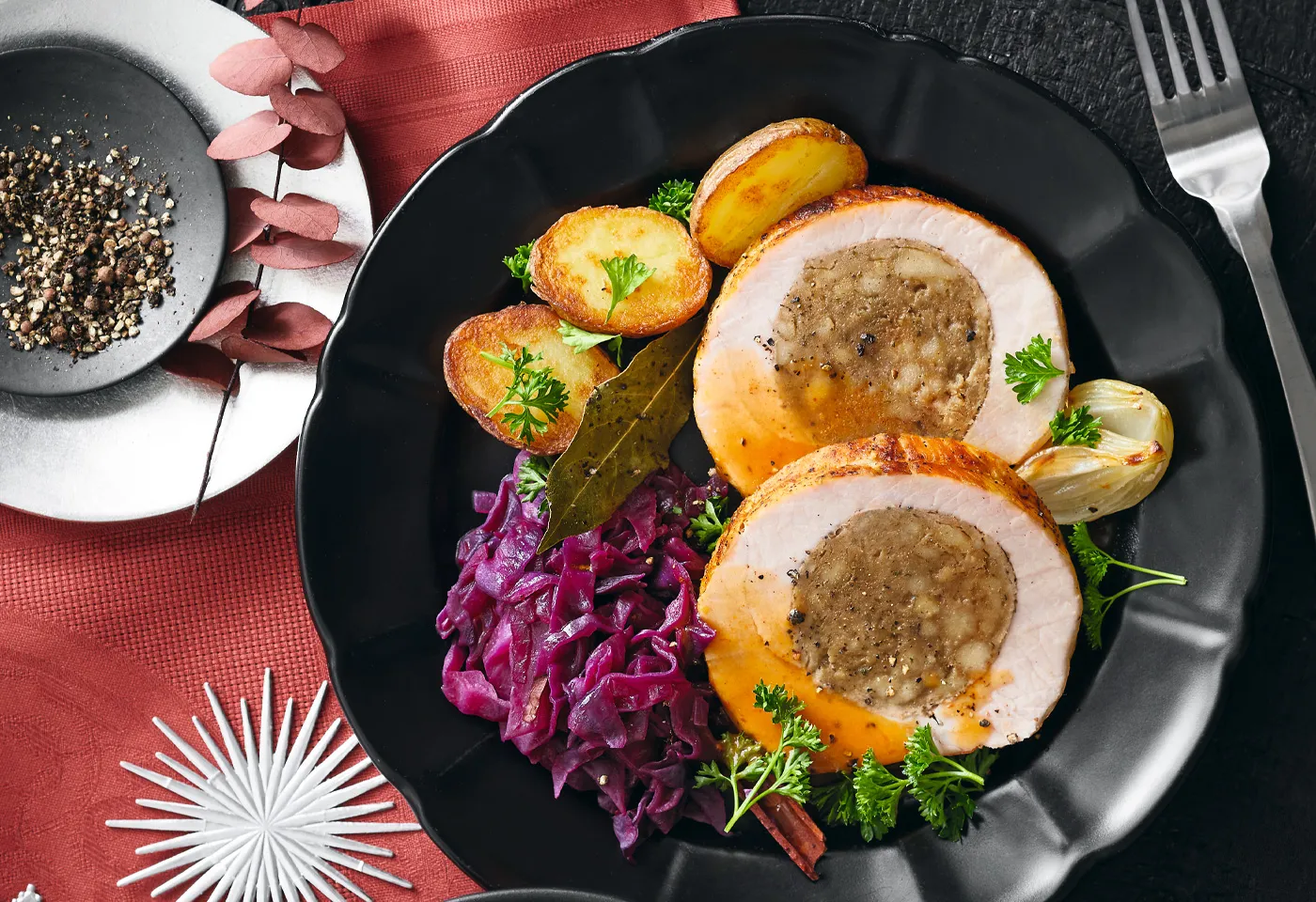 - 1Hofstädter Karreerollbraten mit Pilz-Semmel-Fülle