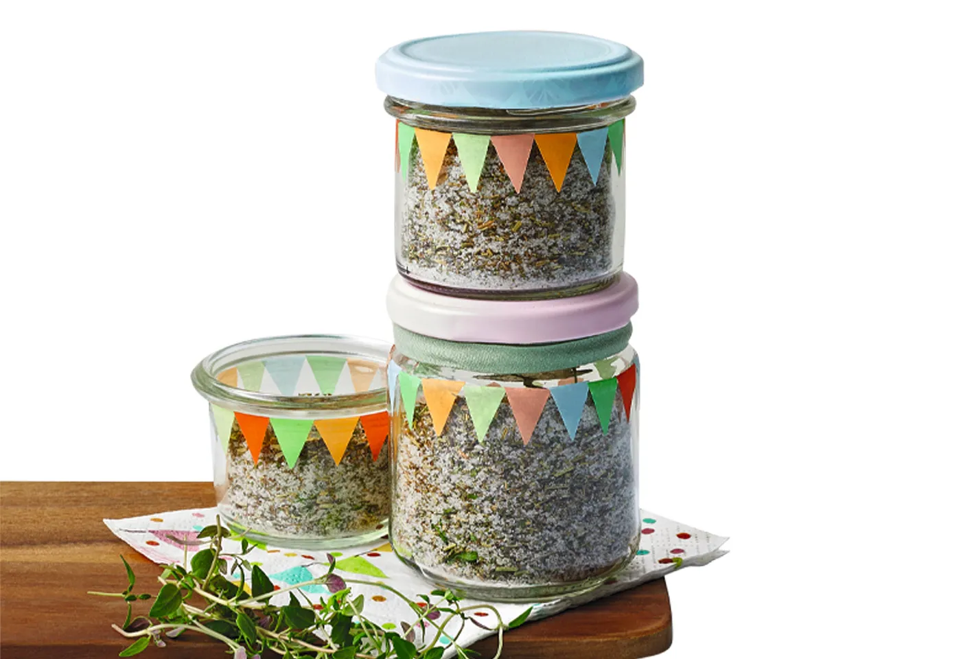 - accessibility.recipes.cookingstepZerkleinere die getrockneten Kräuter in einem Mixer. Vermische sie mit dem Salz und fülle das Kräutersalz in Gläser.