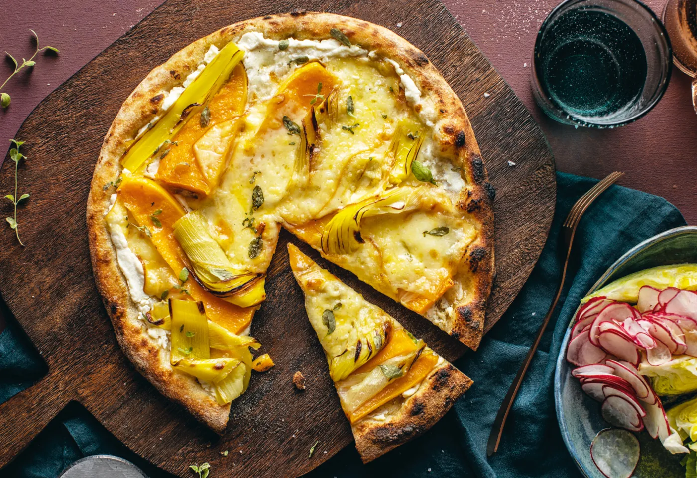 Kürbis-Lauch-Pizza mit Räucherkäse