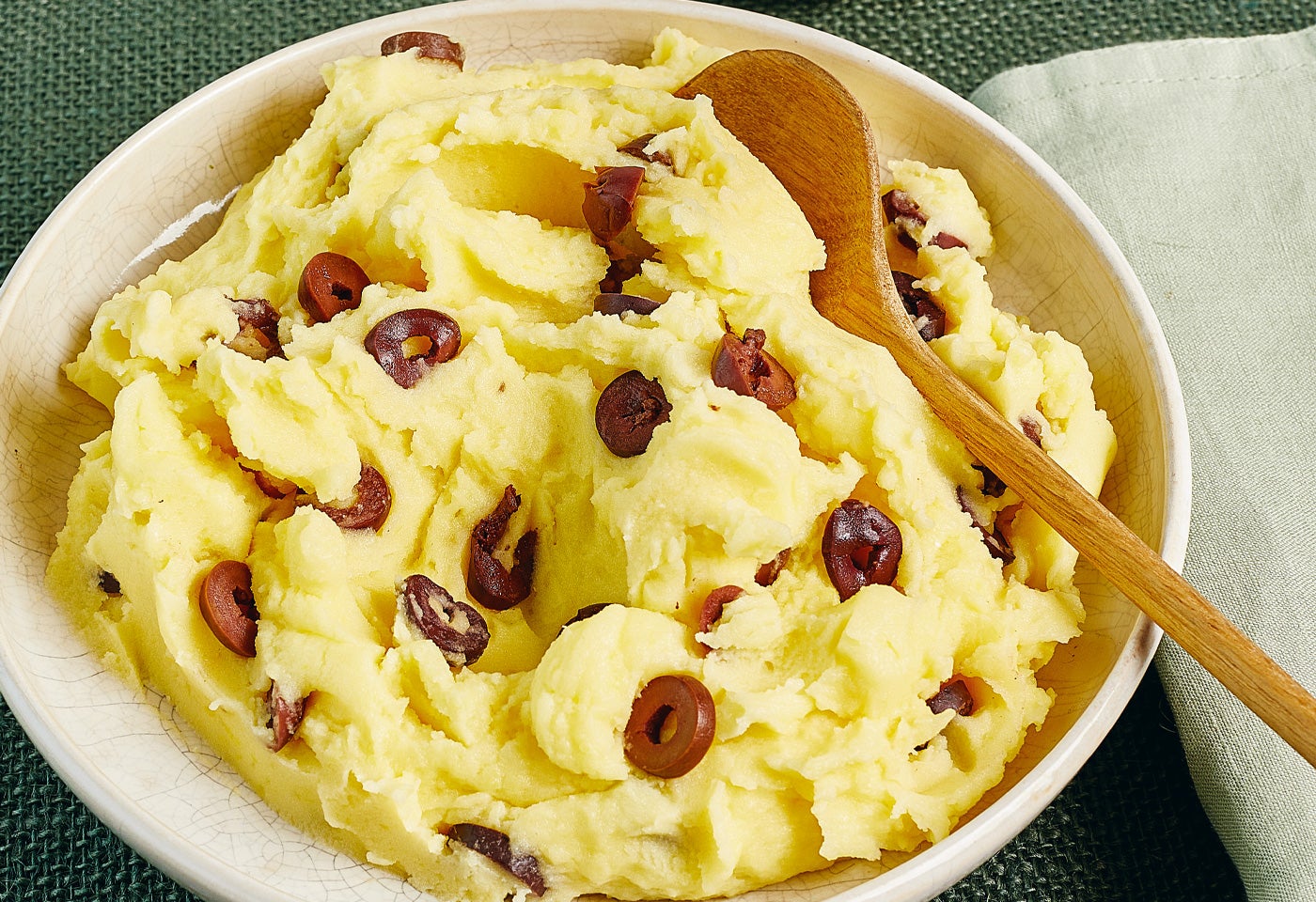 Zutaten für remove add Portion(en)1 kgmehlige Erdäpfel150 mlOlivenöl80 gfrisch geriebener Parmesan120 gKalamata-Oliven ohne Kern3 Lorbeerblätter SalzZubereiten