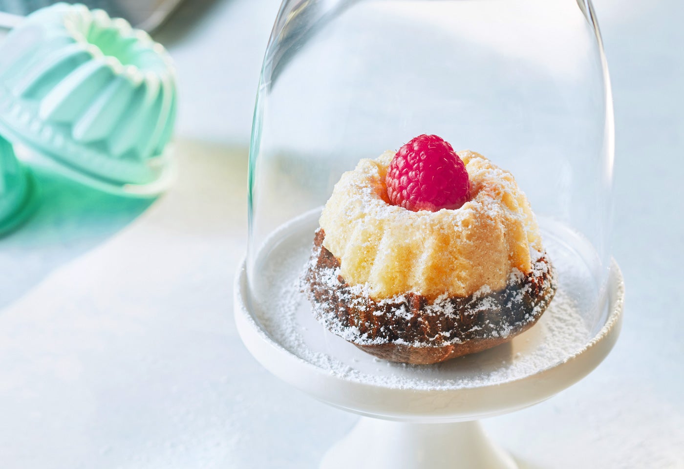 Mini-Gugelhupfe anrichten, dünn mit Staubzucker bestreuen, mit je 1 Himbeere garnieren und servieren.