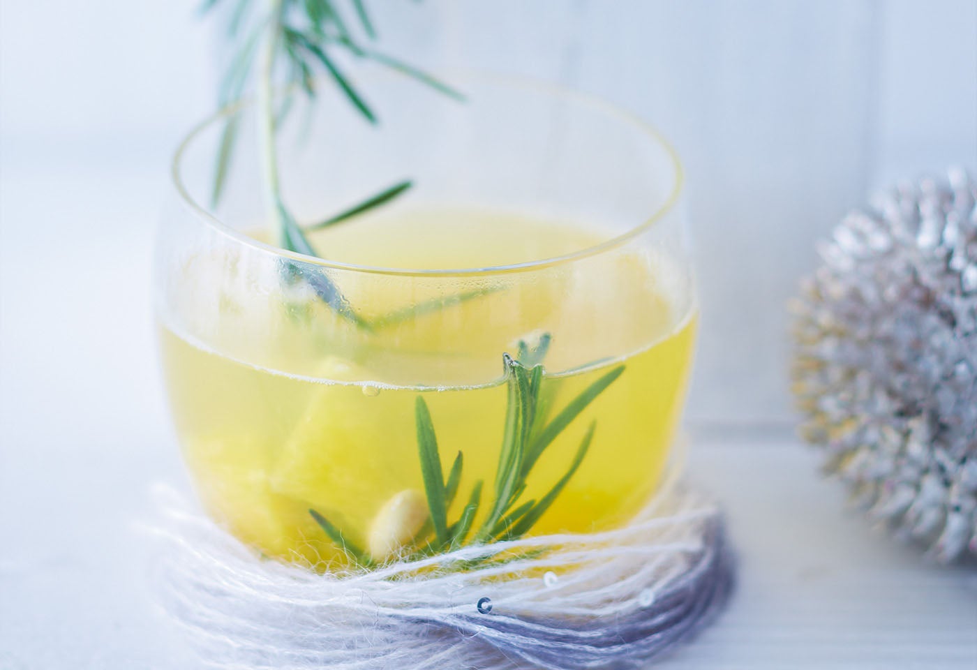Wein, Cointreau, Orangensaft und Orangenschale in einen Topf geben. Honig und Rosmarin zufügen. Alle kurz aufkochen und ca. 15 Minuten ziehen lassen.
