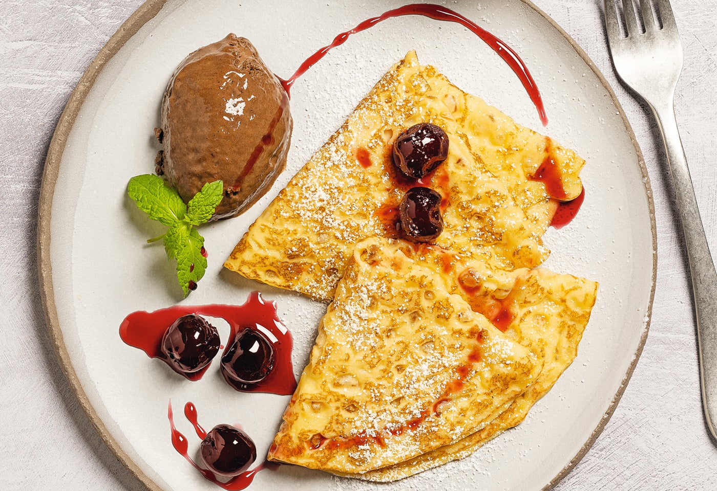 Palatschinken mit Schokomousse und Amarenakirschen