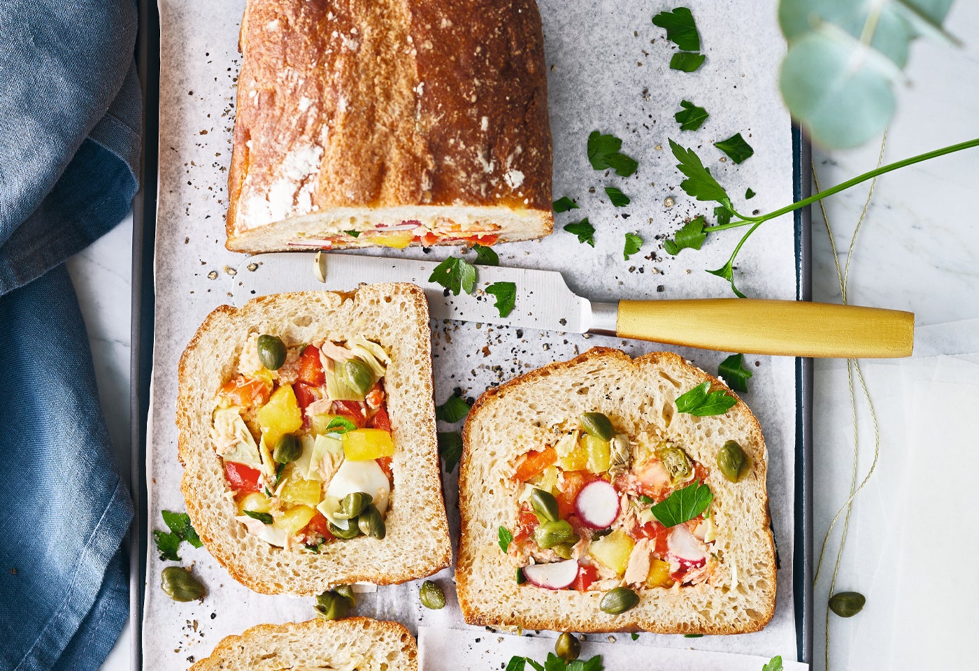 - 1rustikales Weißbrot (z. B. Ja! Natürlich rustikales Bio-Weißbrot)