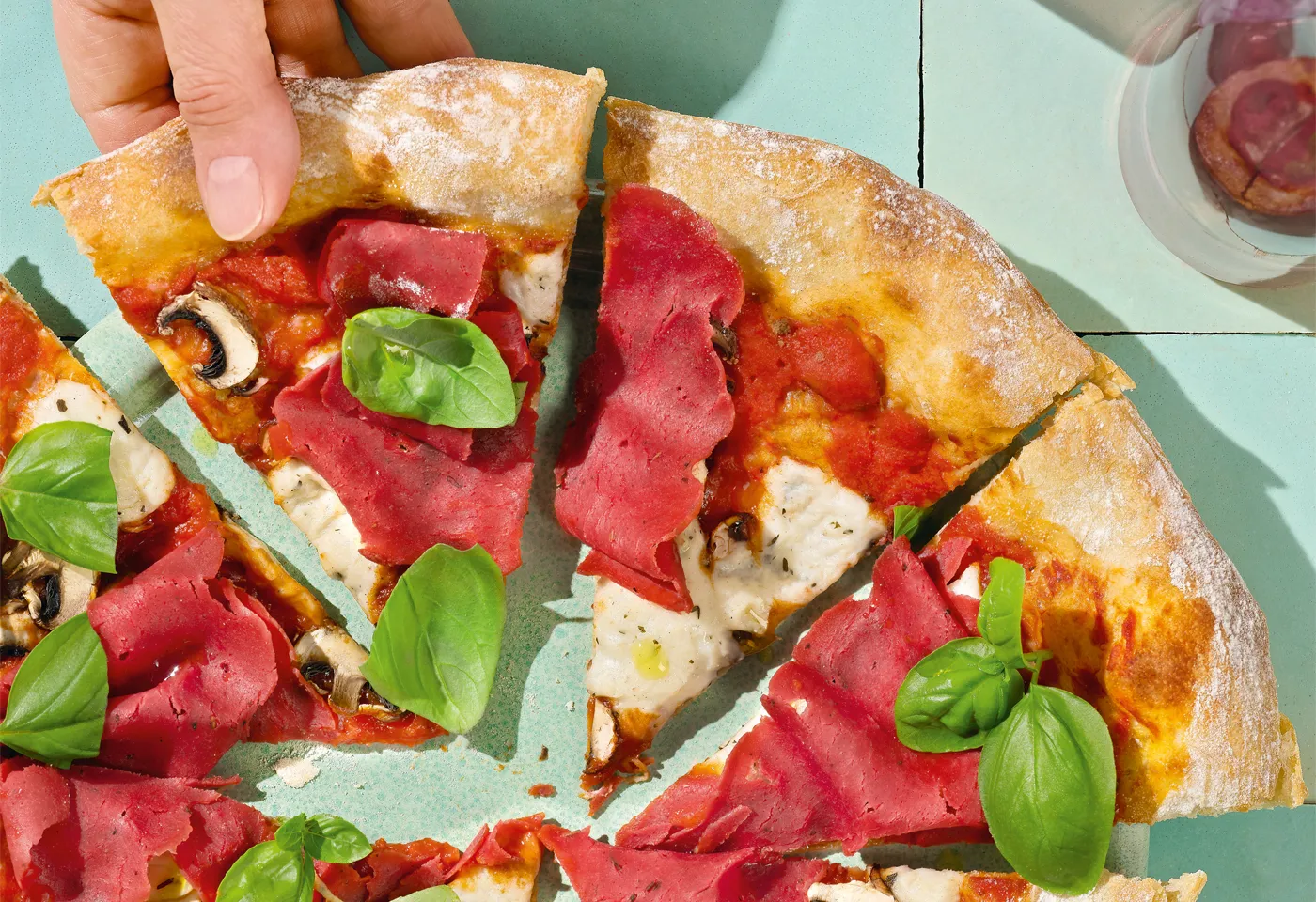 Tipp für einen blitzschnellen Pizzateig: ½ Würfel Germ in 250 ml lauwarmem Wasser auflösen. Mit 500 g Mehl, 4 EL Olivenöl und 1 EL Salz zu einem homogenen Teig verkneten. Nach 30 Min. Gehzeit kann die Pizza zubereitet werden!