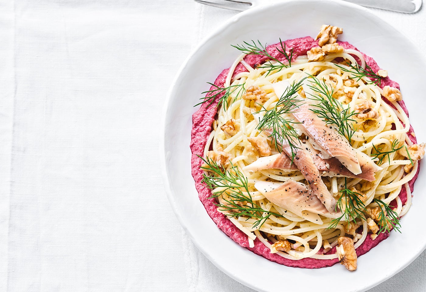 Räucherforellen-Pasta mit Rote-Rüben-Creme und Rezepte für jeden Tag. Einfache und schnelle Gerichte mit vielen Tipps zum Nachkochen!