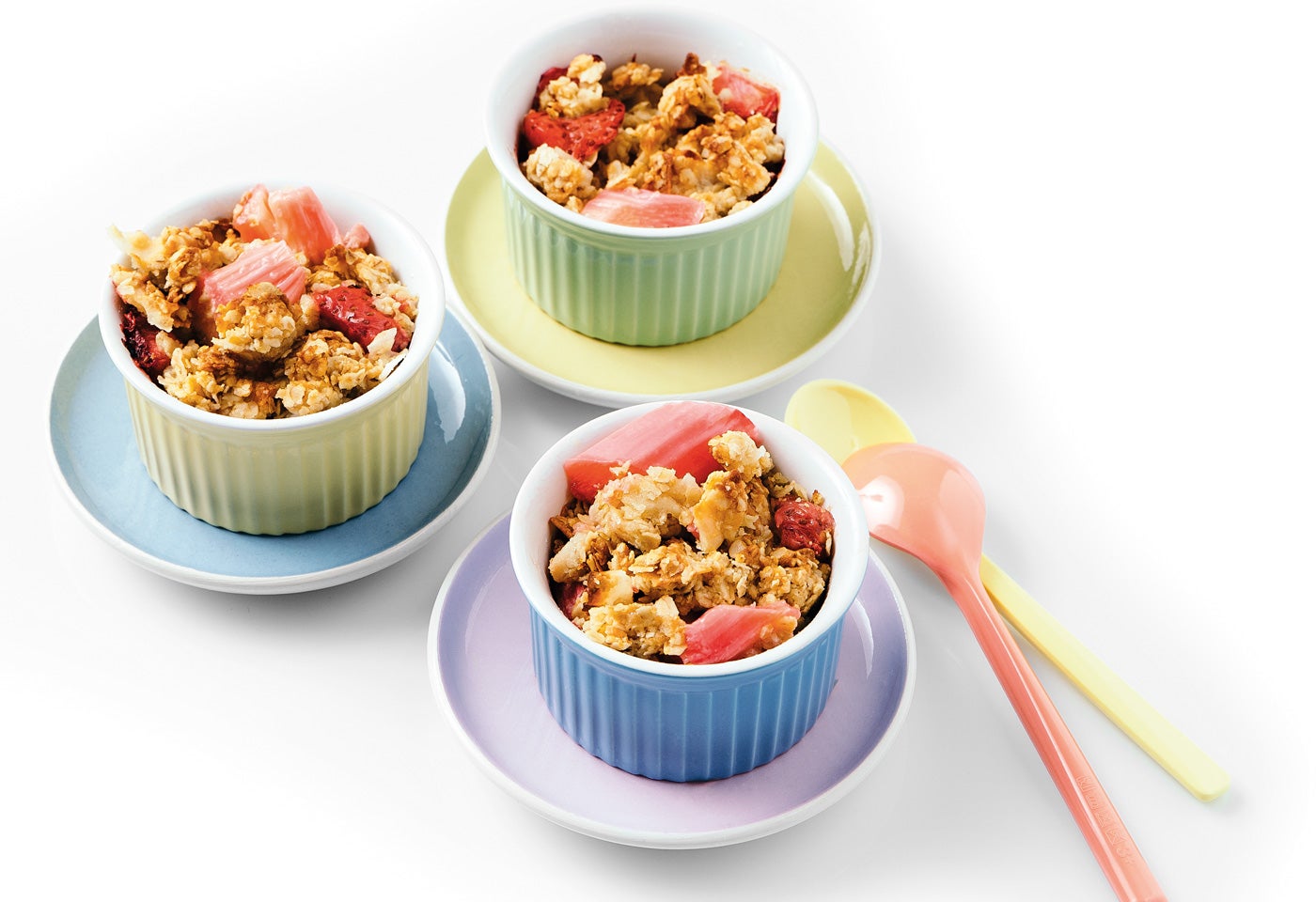 Rhabarber-Erdbeer-Crumble mit Haferflocken und Rezepte für jeden Tag. Einfache und schnelle Gerichte mit vielen Tipps zum Nachkochen!