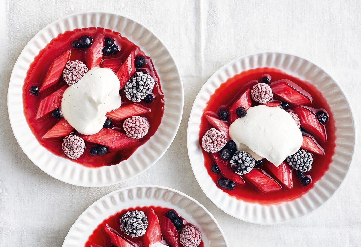 Rhabarberkompott mit halbgefrorenen Beeren und Vanilleobers und Rezepte für jeden Tag. Einfache und schnelle Gerichte mit vielen Tipps zum Nachkochen!