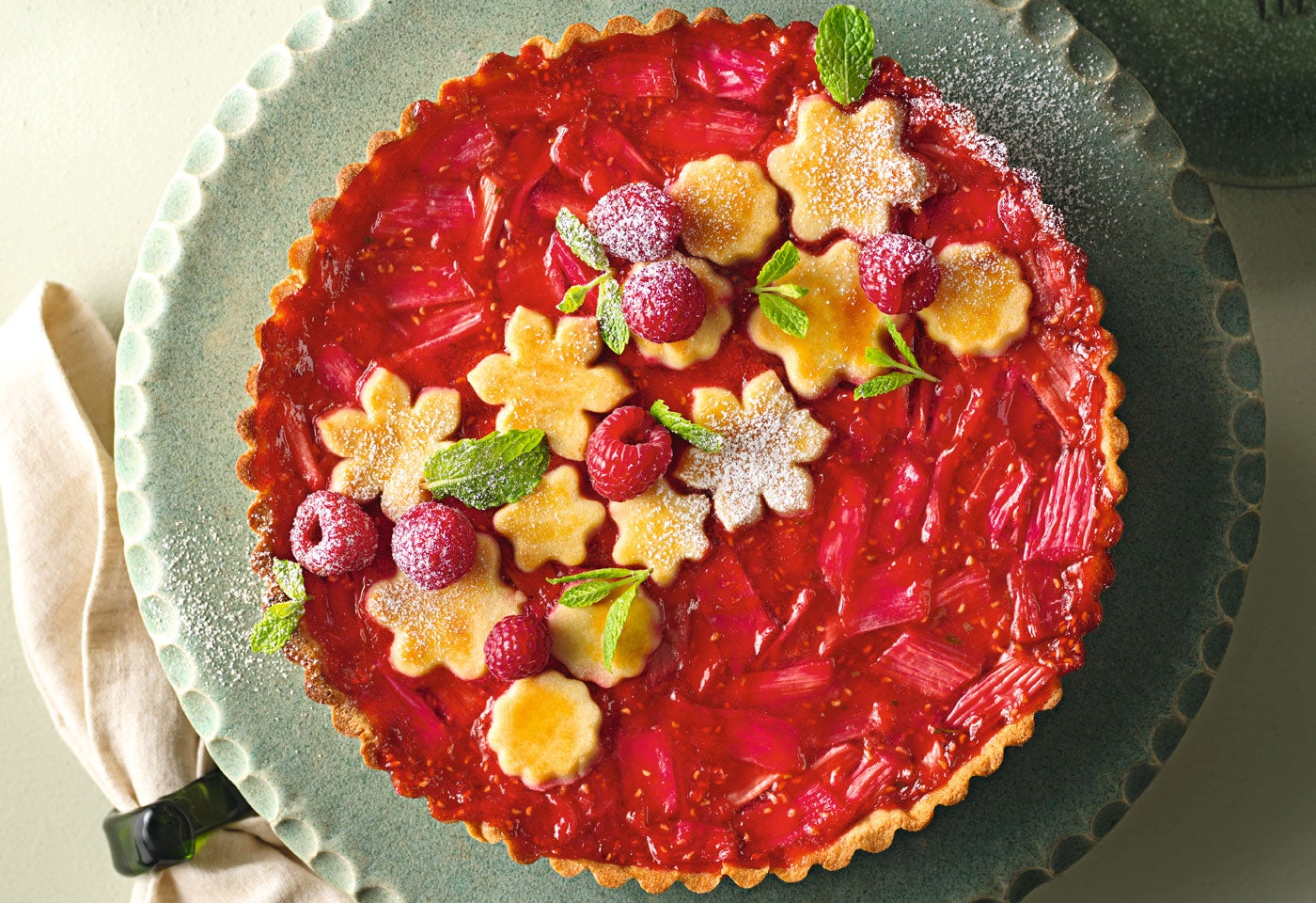 Die Rhabarberfülle geliert erst nach dem Auskühlen. Backen Sie die Tarte daher am besten am Vortag und bewahren Sie sie über Nacht im Kühlschrank auf.