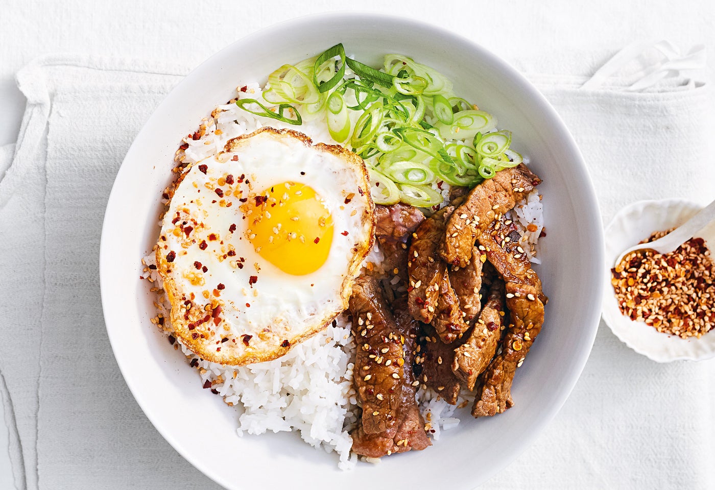 Rindfleisch-Reis-Bowl mit Spiegelei und Rezepte für jeden Tag. Einfache und schnelle Gerichte mit vielen Tipps zum Nachkochen!