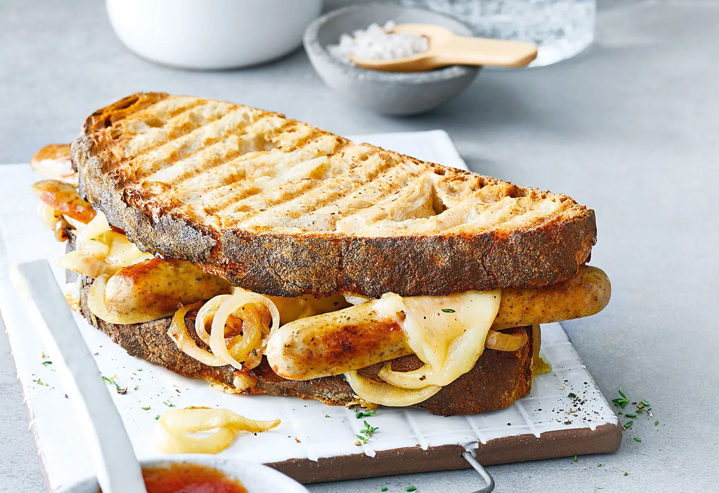 - 8dickere Brotscheiben (z.B. Krusten- oder Bergsteigerbrot)