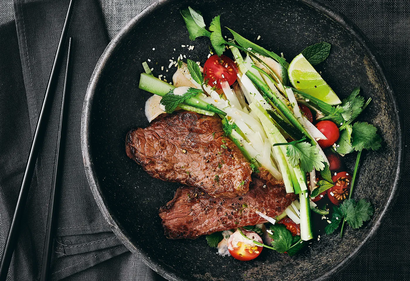 - 1 Handvollje Basilikum-, Koriander- und Petersilienblätter