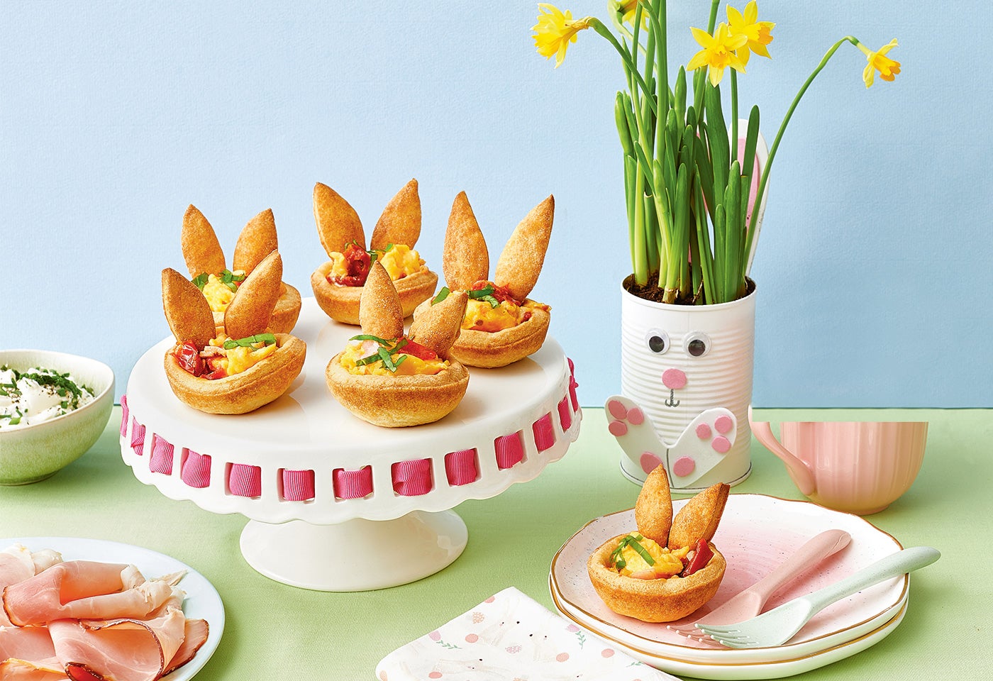 1. Stich 6 Kreise aus und lege damit die Mulden eines Muffinblechs aus.