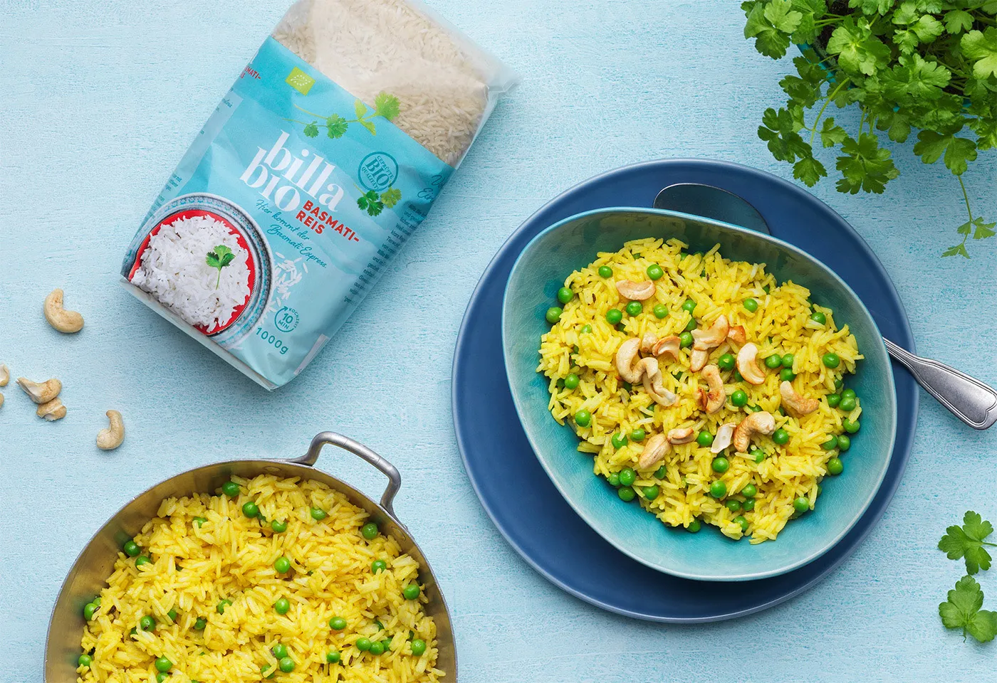 Würziger Basmatireis mit Erbsen und Cashewkernen