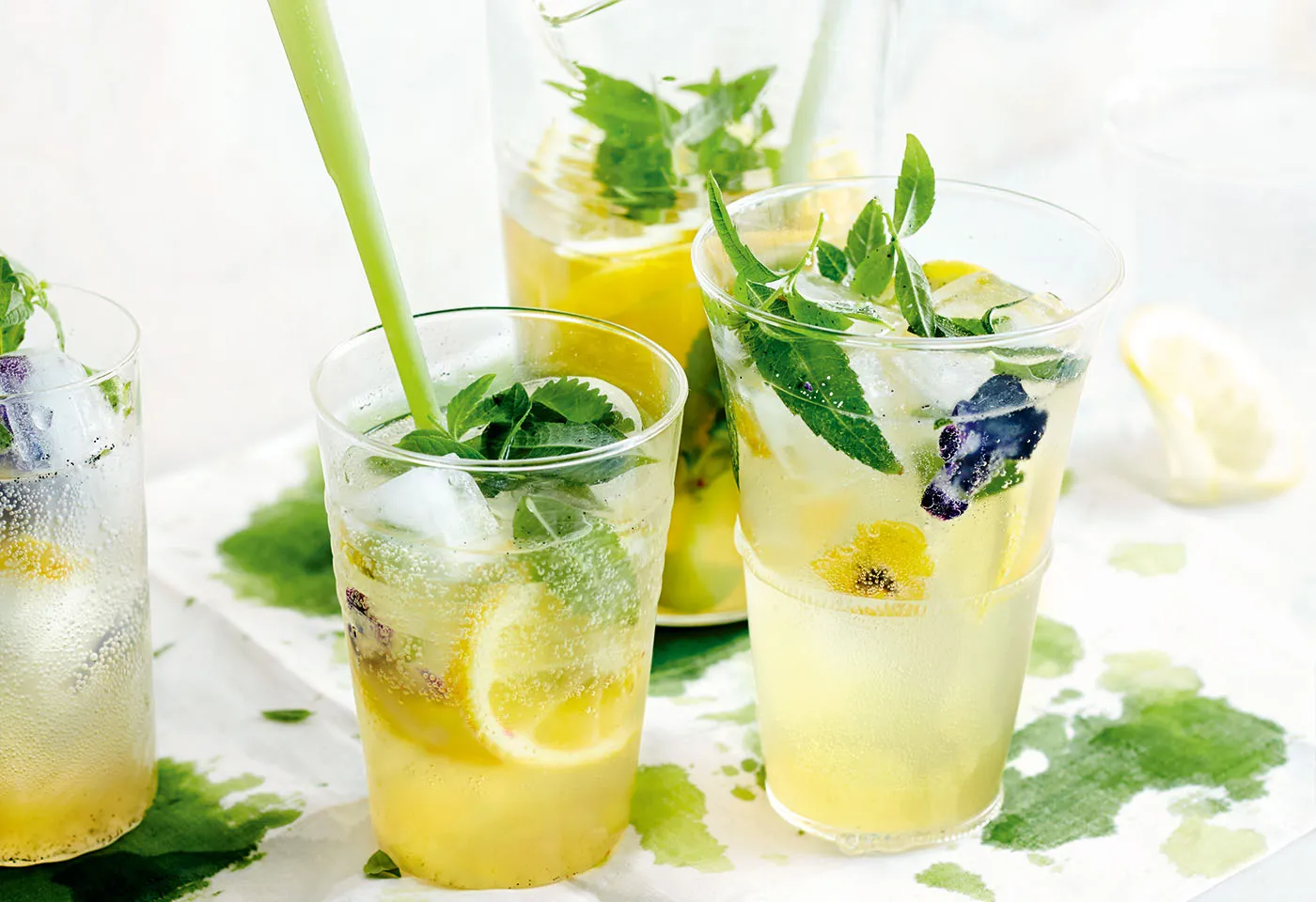 - accessibility.recipes.cookingstepZum Servieren die Zitrone heiß waschen, trocken reiben und in dünne Scheiben schneiden. Jeweils 2 bis 3 Zitronenscheiben, einige Eiswürfel und 2 bis 3 Verbeneblätter in 4 Gläser geben und mit je 3 bis 4 EL Sirup übergießen. Mit Soda oder Sekt auffüllen und servieren.