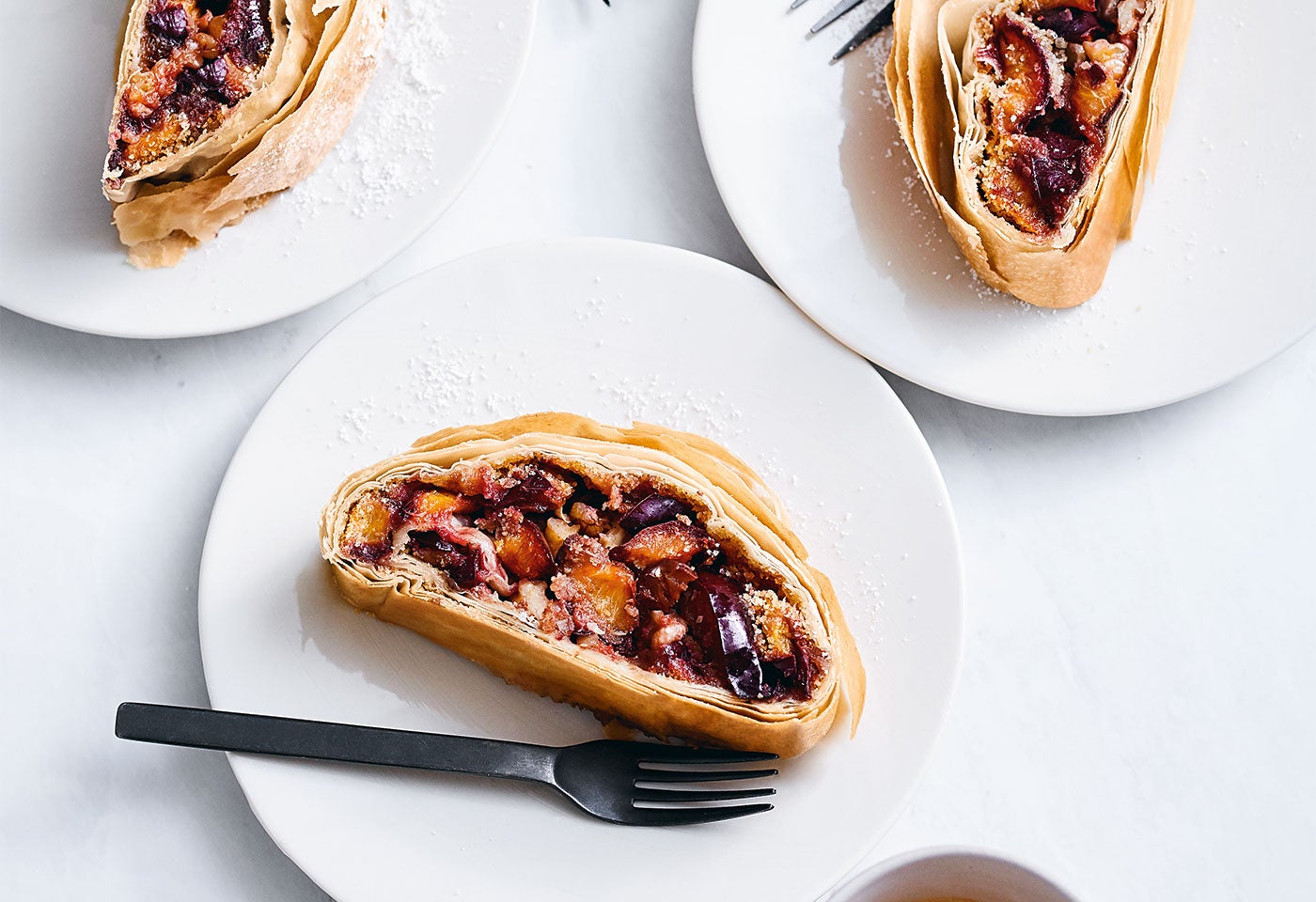 Strudel anrichten, mit Staubzucker bestreuen und servieren.