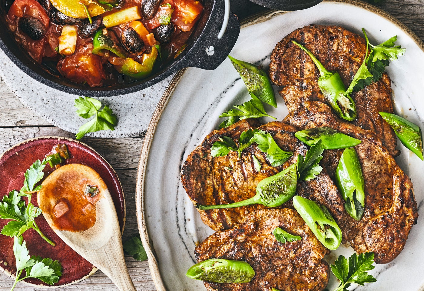 Schopfsteaks mit Texas-Style-Gemüsestew