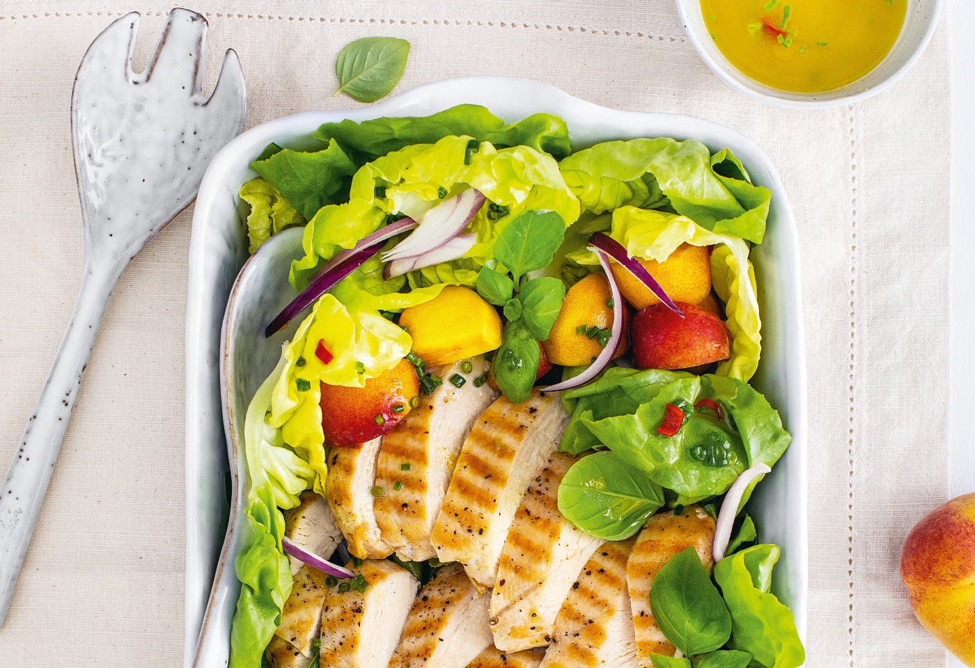 Gegrillte Hendlfilets mit Pfirsichsalat