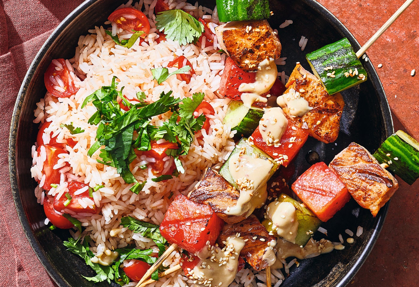 Bunte Puten-Gemüse-Grillspieße mit Basilikumbutter