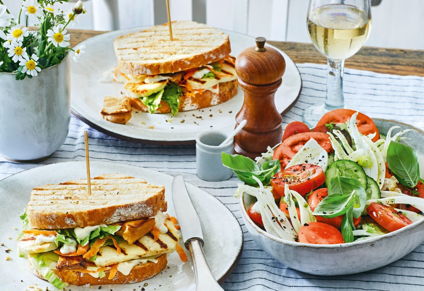 Halloumi-Grillsandwich mit Sommergemüse-Salat
